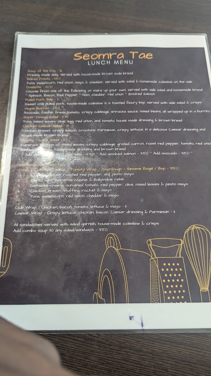 With both indoor and outdoor seating, Seomra Tae offers a cozy ambiance perfect for a light breakfast or leisurely lunch. Whether you're grabbing a delicious caesar wrap or savoring avocado toast, the friendly staff ensures a memorable dining experience. Stop by this family-owned café to relish the charm that sets Seomra Tae apart.